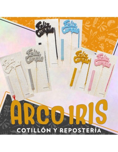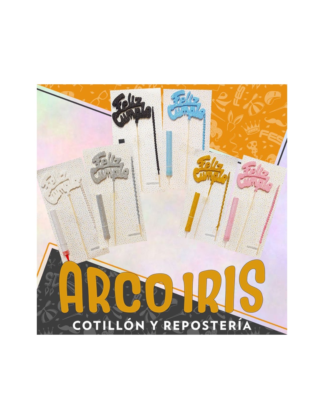 TOPPER KIT FRASE FELIZ CUMPLE +10-5% CON VELA FINITA + BENGALA PROMO POR CANTIDAD DECORATIVOS CAKE TOPPER DECORATIVOS CAKE TOPPER