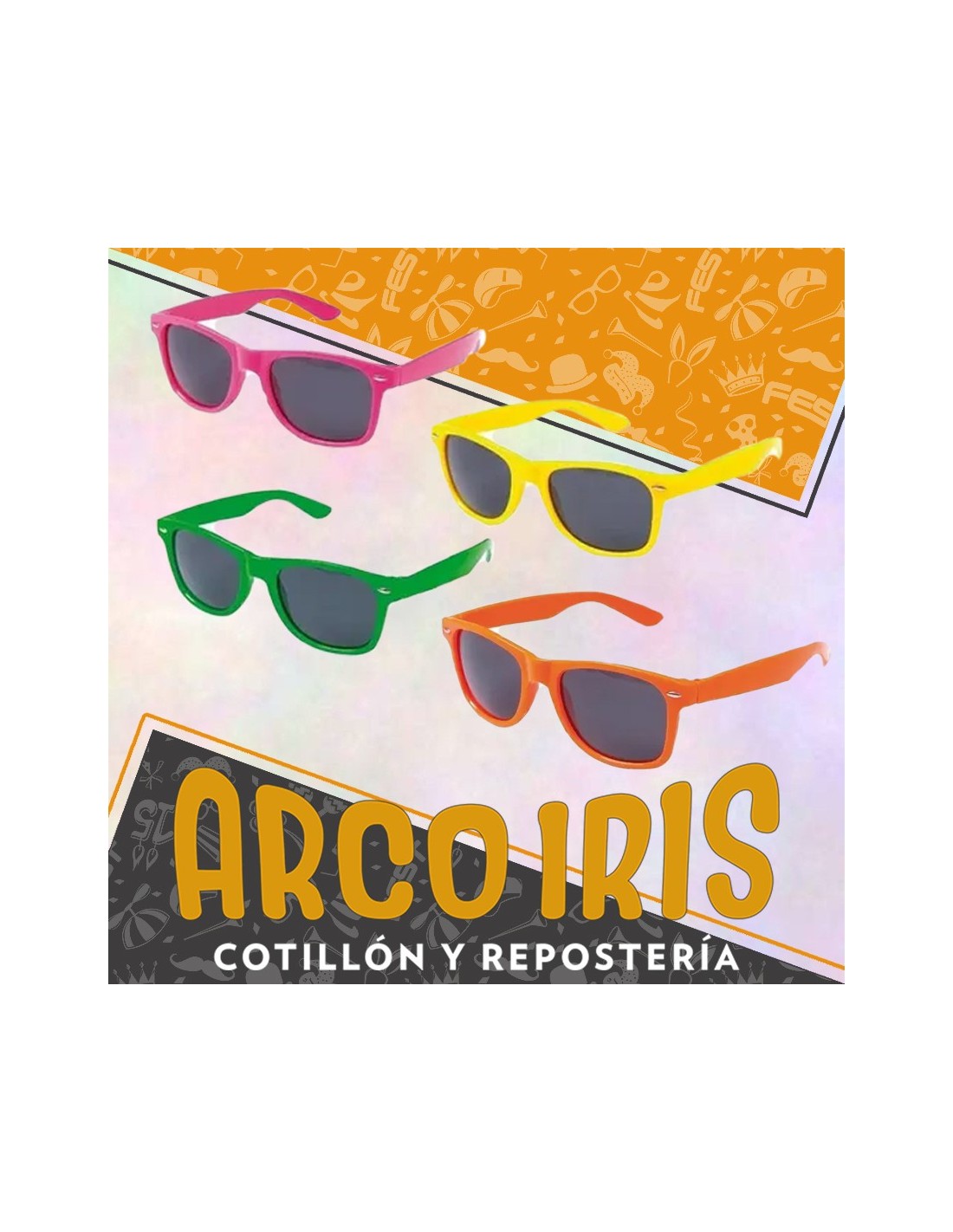 ANTEOJO CLASICO CAJA X 24 - 4 COLORES -AMARILLO-FUCSIA-VERDE-NARANJA-RAYBAN CAT2 UPD
