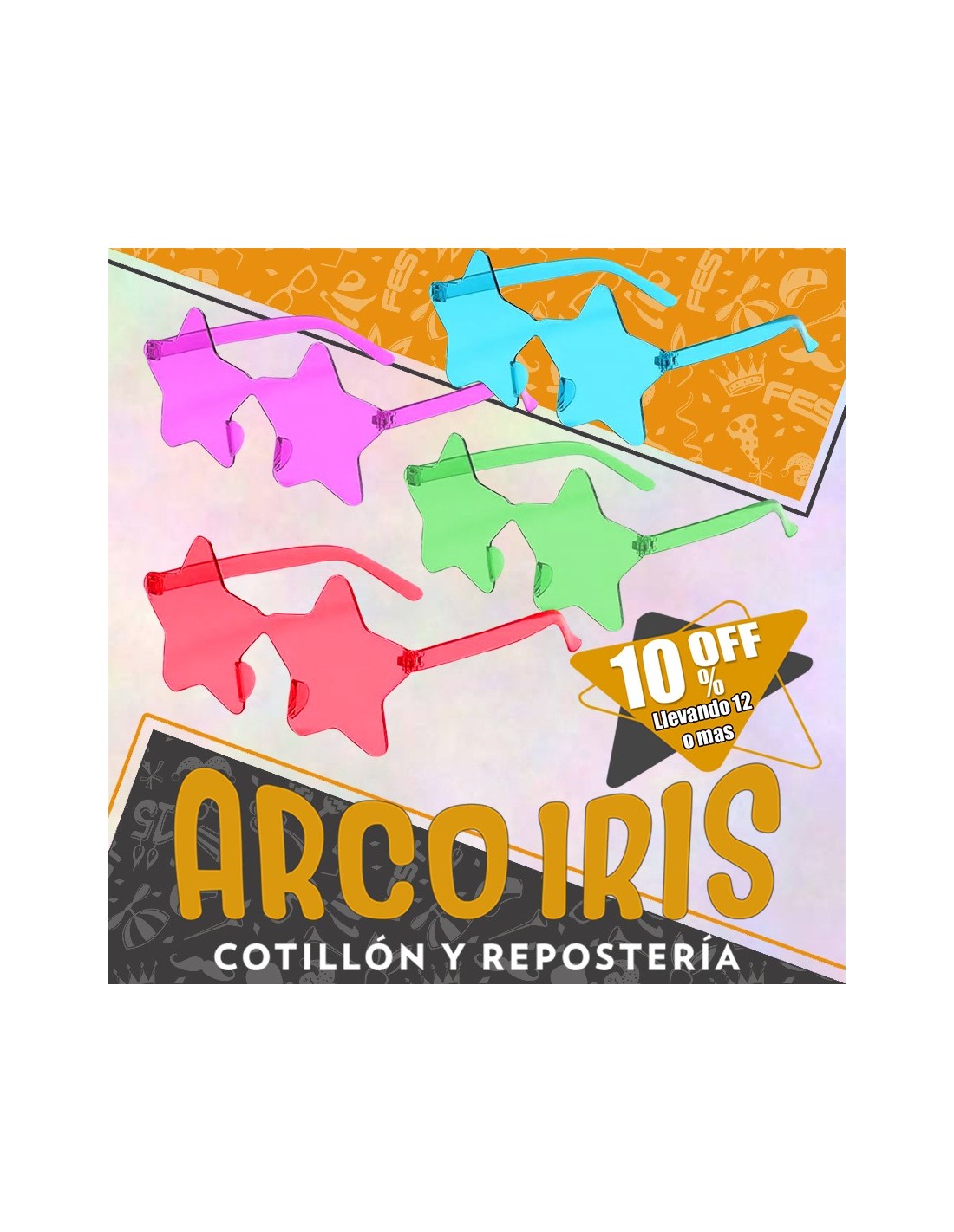 Anteojo Estrella Sin Marco Xu +12-10% - Acrilico Varios Colores- Promo Por Cantidad