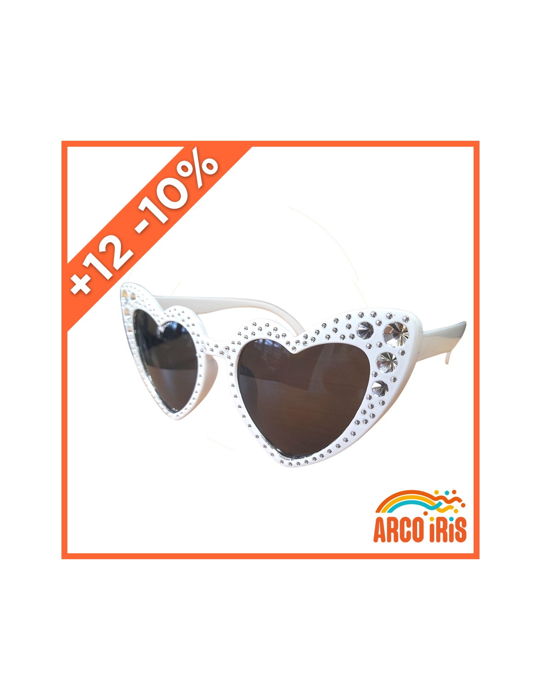Anteojo Corazon Blanco Con Strass Plastico +12-10% - Valentin Promo Por Cantidad-varios Colores