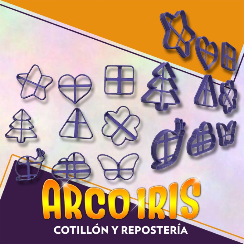 CORTANTE COOKIES SET MINI MIX- 9 PIEZAS PLASTICO VIOLETA MARIPOSA/FLOR/CARACOL/ESTRELLA/TRIANGULO/CUADRADO/PINO/NUBE