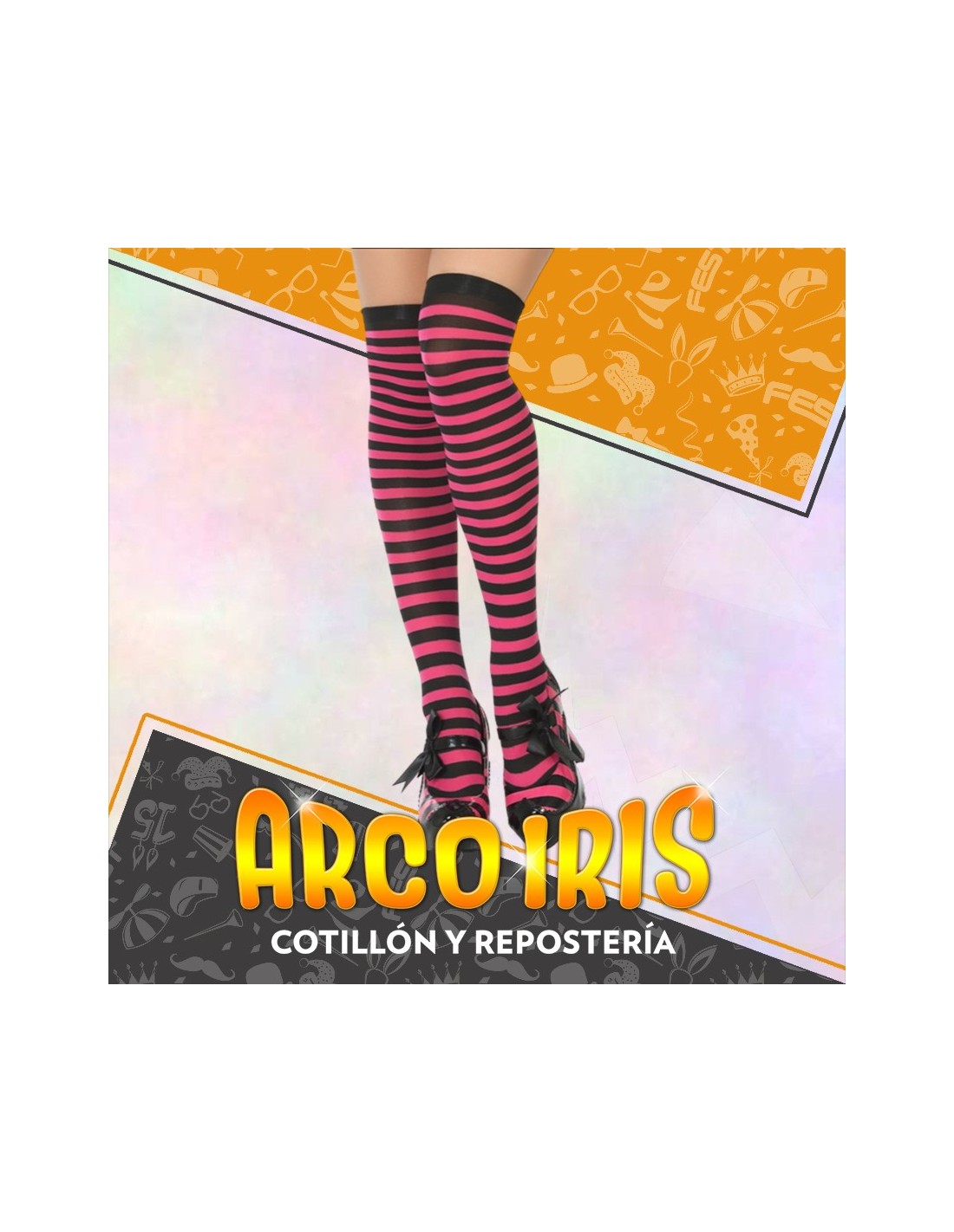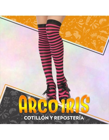 Medias Rayadas Negras Y Rosas Xu - 68 Cm Bucaneras Party Store