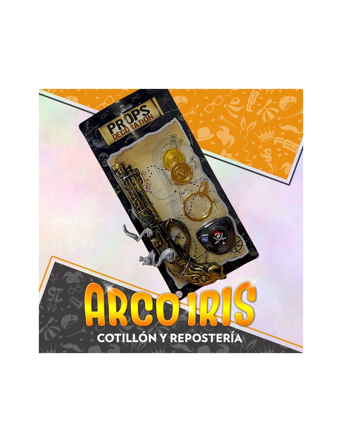 SET PIRATA - CON TRABUCO+PARCHE+MONEDAS+ARO O BRUJULA