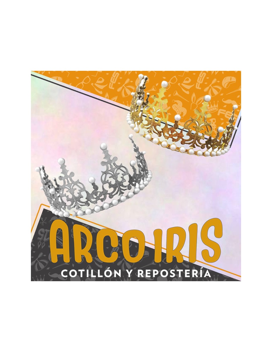 CORONA REINA METAL 26 CM ORO/PLATA CON PERLAS 5 PUNTAS DE 5.5 CM DE ALTO-TIARA-