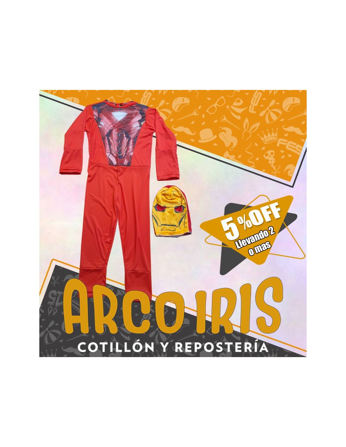 Disfraz Enterito Hombre De Hierro +2-5% Talle 2 - Promo Por Cantidad Ironman Halloween