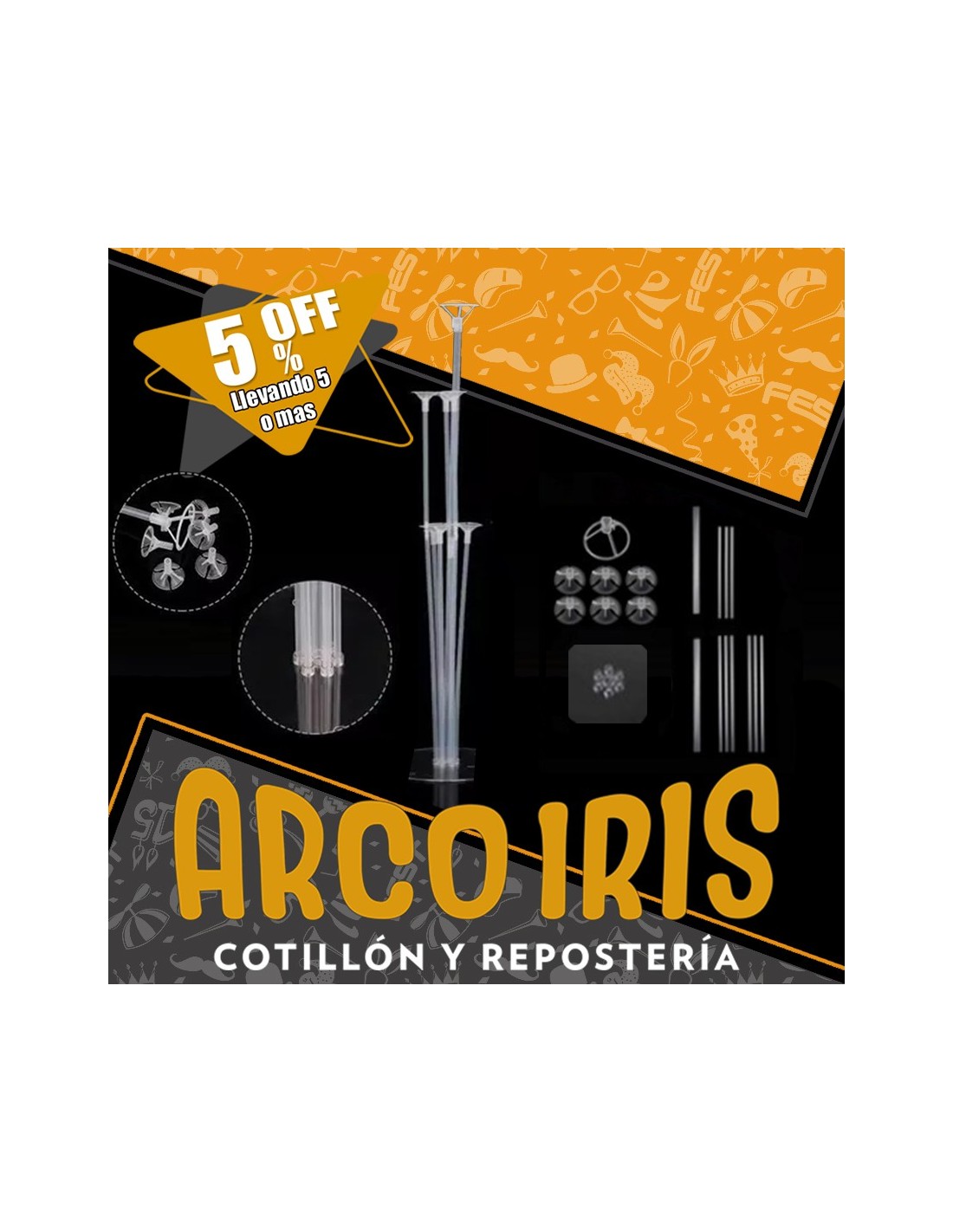 BASE CON ADHESIVO Y SOPORTE PARA 7 GLOBOS +5-5% - ACRILICO PORTA MYLAR/GLOBO SOPORTE PARA GLOBOS