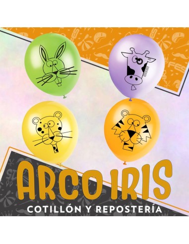 Globo Estandar 12 X 12 - Animalitos Multicolor Full Impresos