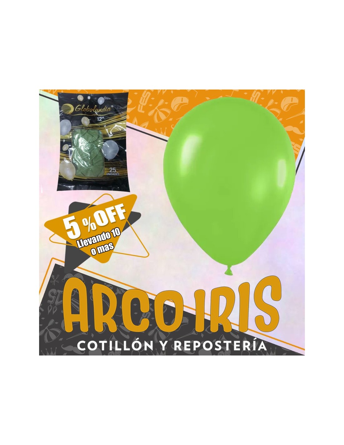GLOBO ESTANDAR 12` X 25 - VERDE MANZANA +10-5% PROMO POR CANTIDAD GLOBOLANDIA