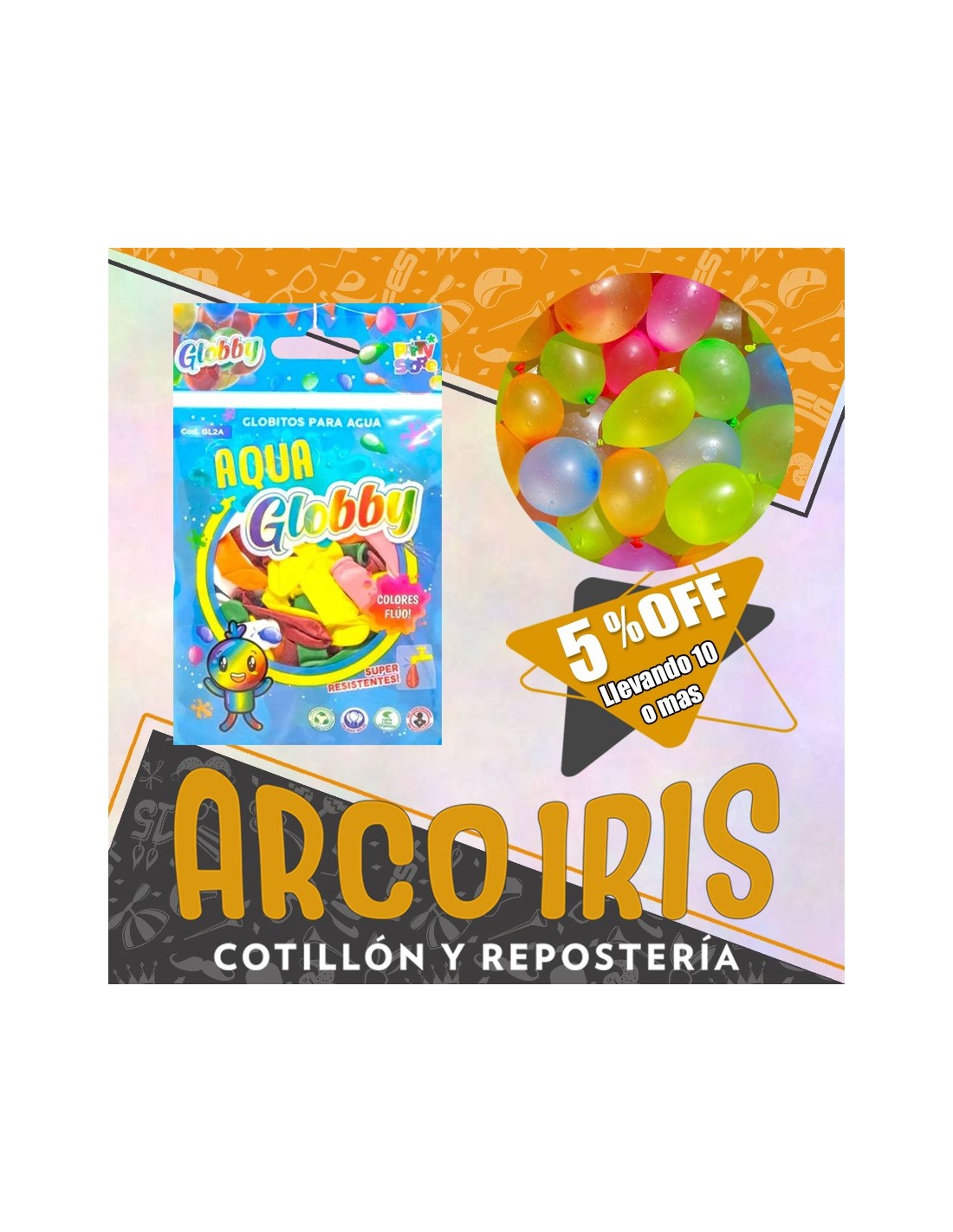 Bombitas Globby 10 X 100 +10-5% Aqua Carnaval Super Resistentes Tipo Bombucha Promo Por Cantidad Party Store
