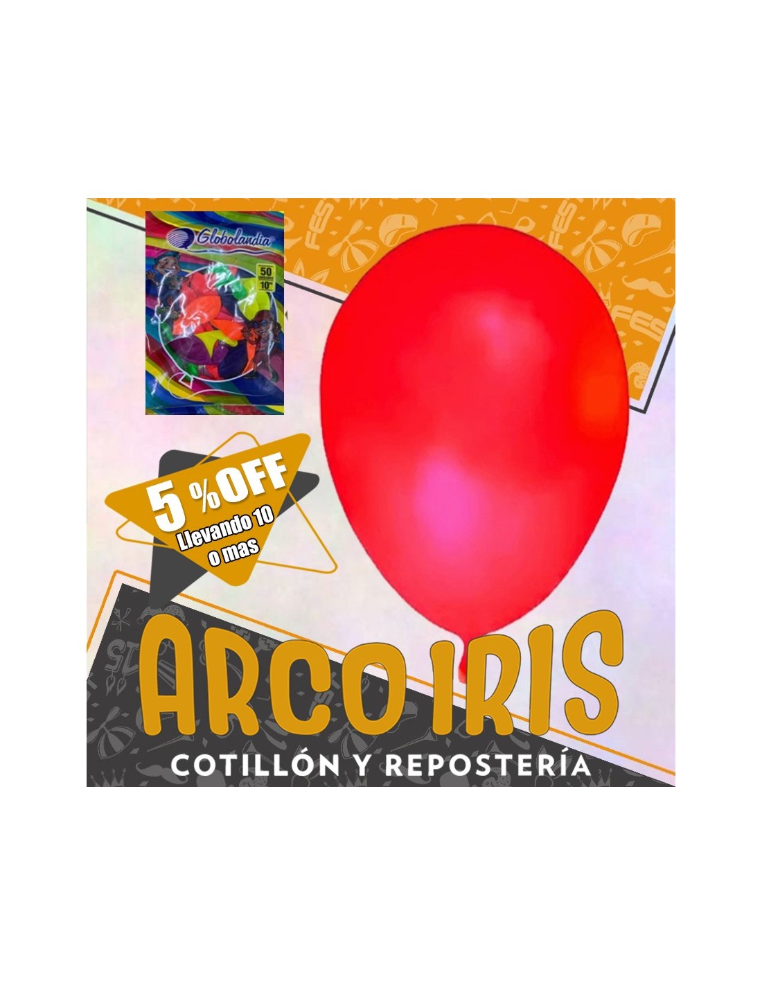 GLOBO FLUO 10` X 50 ROJO +10-5% PROMO POR CANTIDAD GLOBOLANDIA