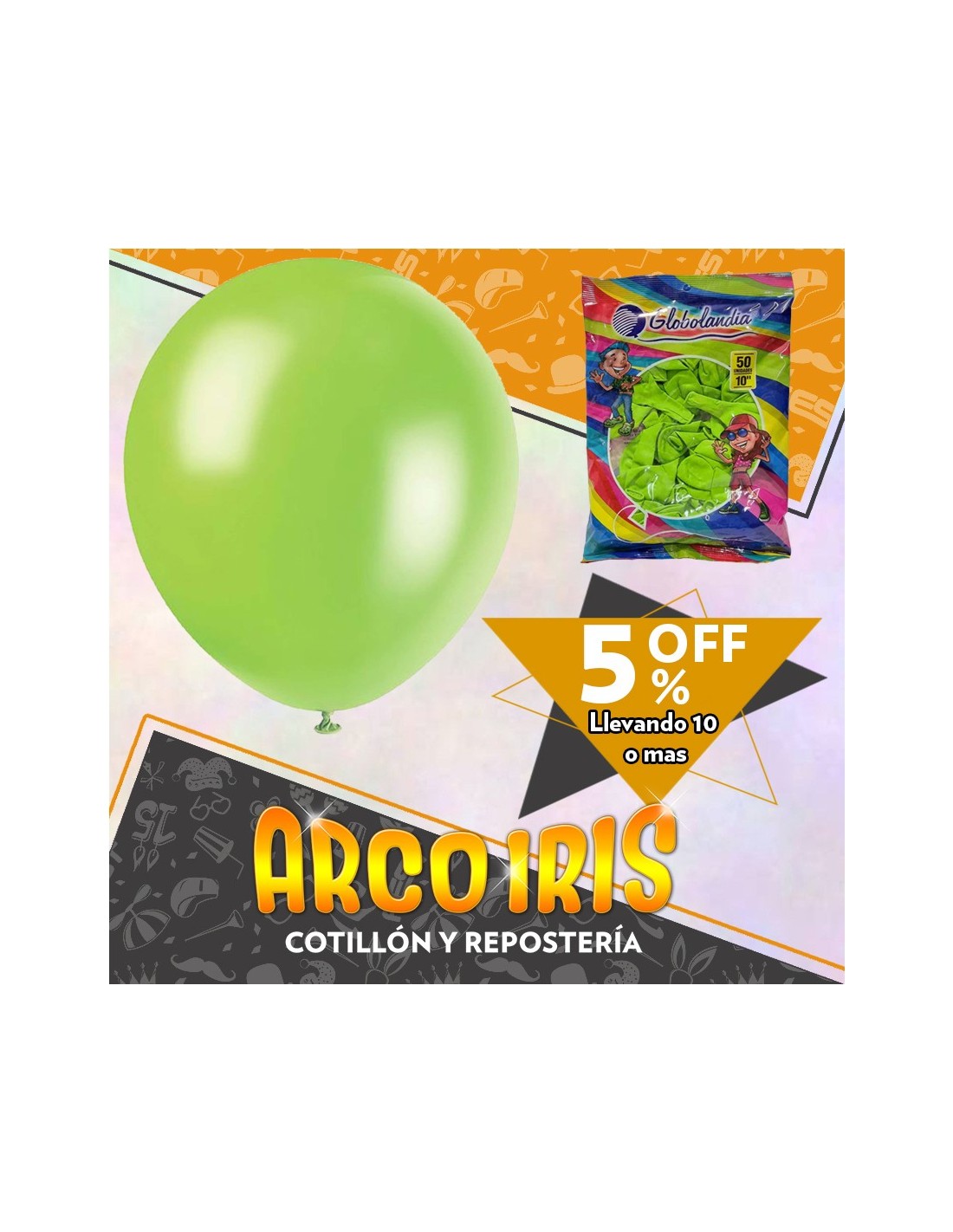 Globo Estandar 10 X 50 - Verde Manzana +10-5% Promo Por Cantidad Globolandia