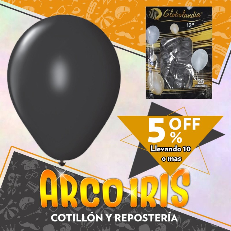 GLOBO ESTANDAR 12` X 25 - NEGRO +10-5% PROMO POR CANTIDAD GLOBOLANDIA HALLOWEEN