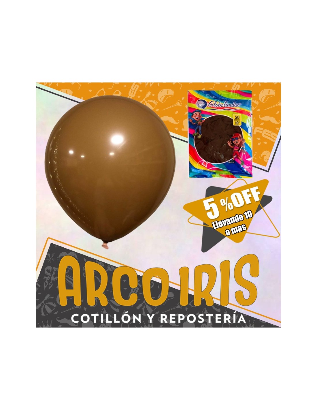 Globo Estandar 10 X 50 - Chocolate / Marron +10-5% Promo Por Cantidad Globolandia