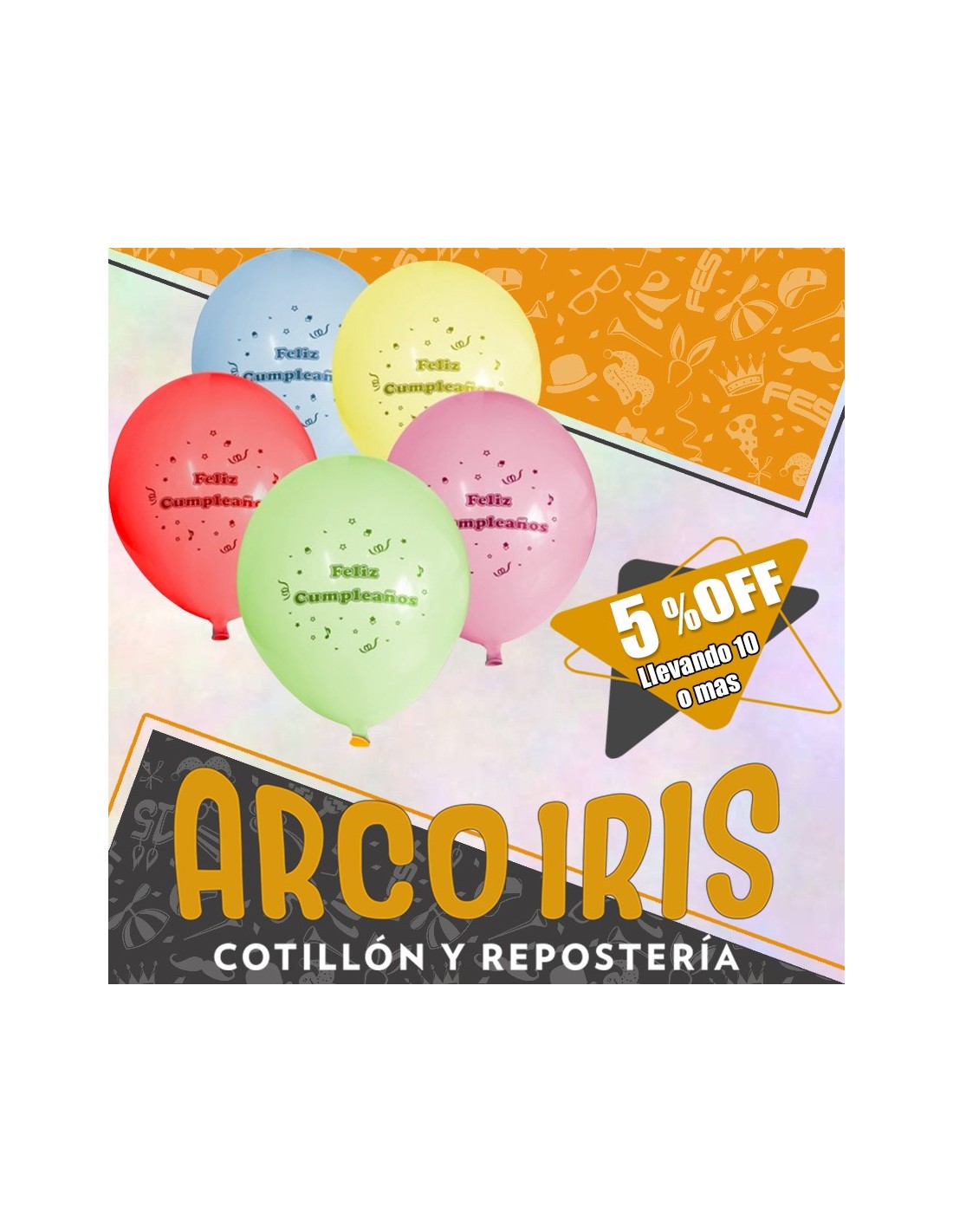 Globo Estandar 10 X 50 - Feliz Cumpleanos +10-5% Promo Por Cantidad Globolandia