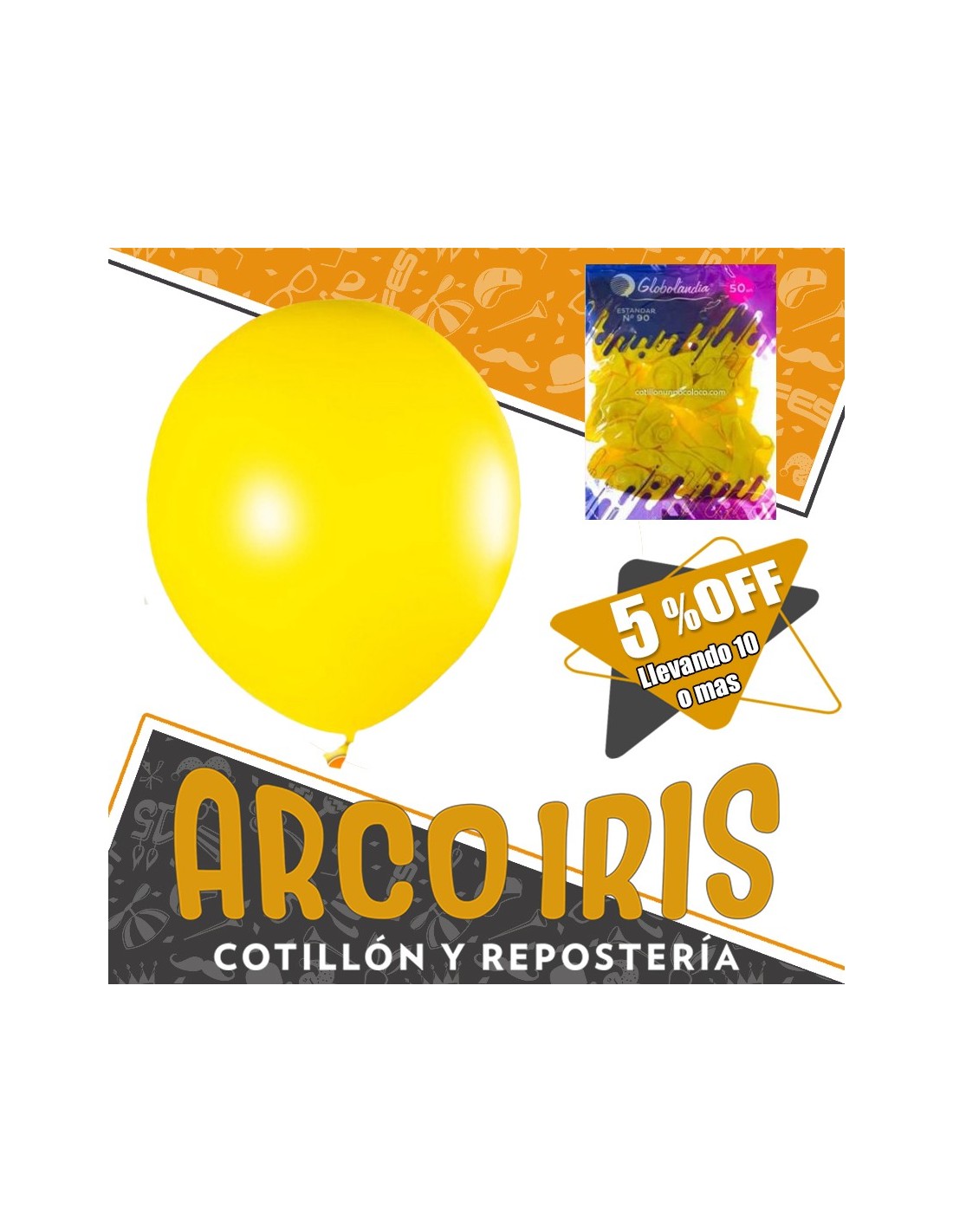 Globo Estandar 10 X 50 - Amarillo +10-5% Cat2 Promo Por Cantidad Disponible Por Color Y Multicolor Globolandia