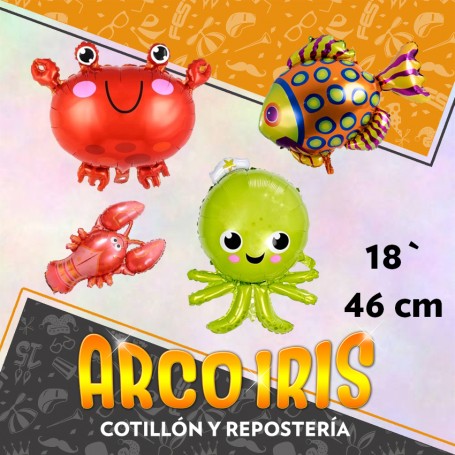 MYLAR 18` FONDO DE MAR METAL XU - 46 CM LANGOSTA/CABALLITO/CANGREJO/PECES/PULPO/HIPOCAMPO/TIBURON/UNICORNIO DE MAR/ESTRELLA DE MAR GLOBO METALIZADO PAPEL