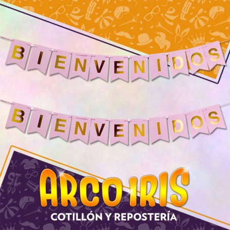 Banderin Bienvenidos Xu - Rosa Gold Mundo
