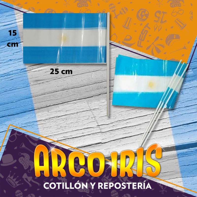 BANDERA 15 X 25 CM - CON SOL X 100 PATRIO MUNDIAL ARGENTINA
