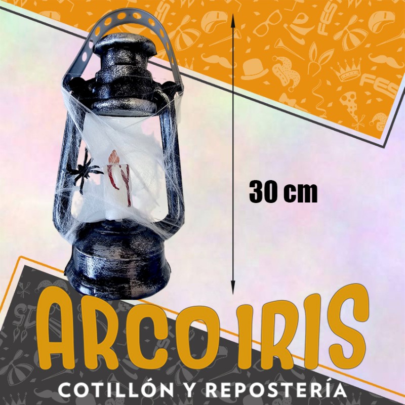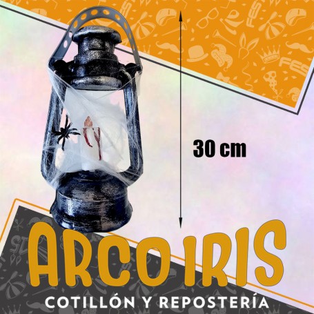 Adorno Farol Con Vela 30 Cm -telarana Y Aranas Halloween Stasio