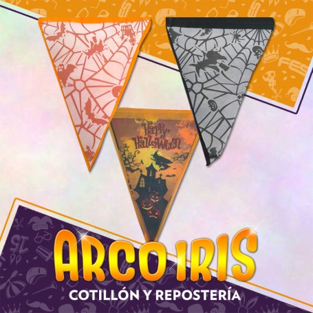 Banderin Fiselina Bicolor Xu Impreso Telarana/bruja Halloween