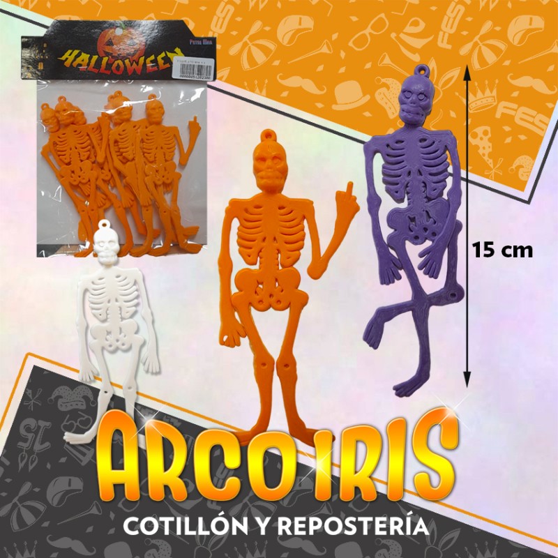 ESQUELETO MINI 15 CM X 6 GOMA BLANCO-VIOLETA-NARANJA HALLOWEEN PATRIMAR