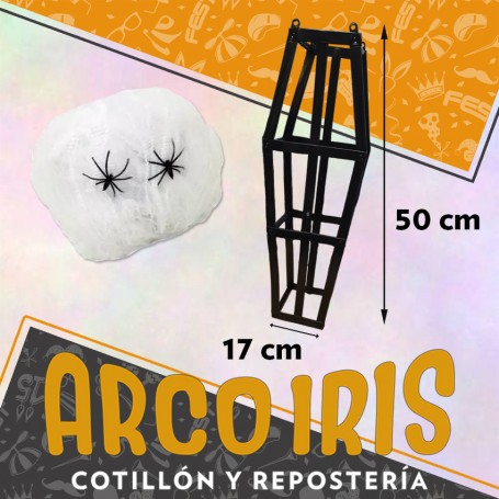 Ataud Con Tela Arana Y Aranas 50 X 17 Cm Xu - Halloween Para Deco Stasio