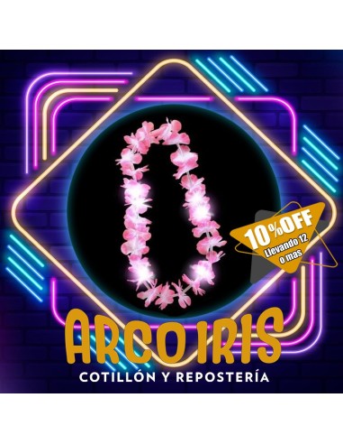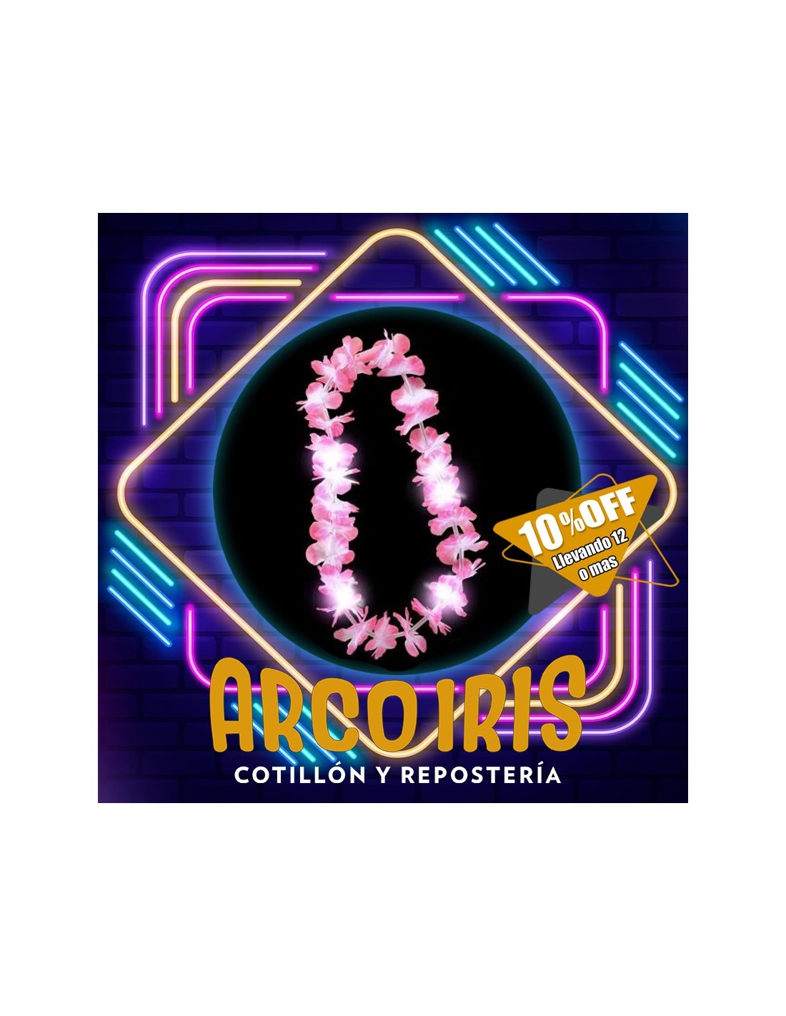 LUMINOSO COLLAR HAWAIANO ROSA XU +12-10% 10 LED COLLAR FLORES PRIMAVERA PARTY STORE