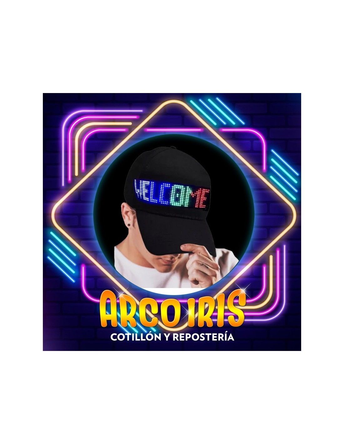 LUMINOSO GORRA LED DISPLAY CONFIGURABLE BLUETOOTH RECARGABLE - PROGRAMA TU FRASE CON EL CELULAR USB BATER\'cdA RECARGABLE INCORPORADA SEGURO E INAL\'c1MBRICO LA FUENTE DE LUZ LED NO TIENE IMPACTO EN SU VISI\'d3N PATRONES DINAMICOS