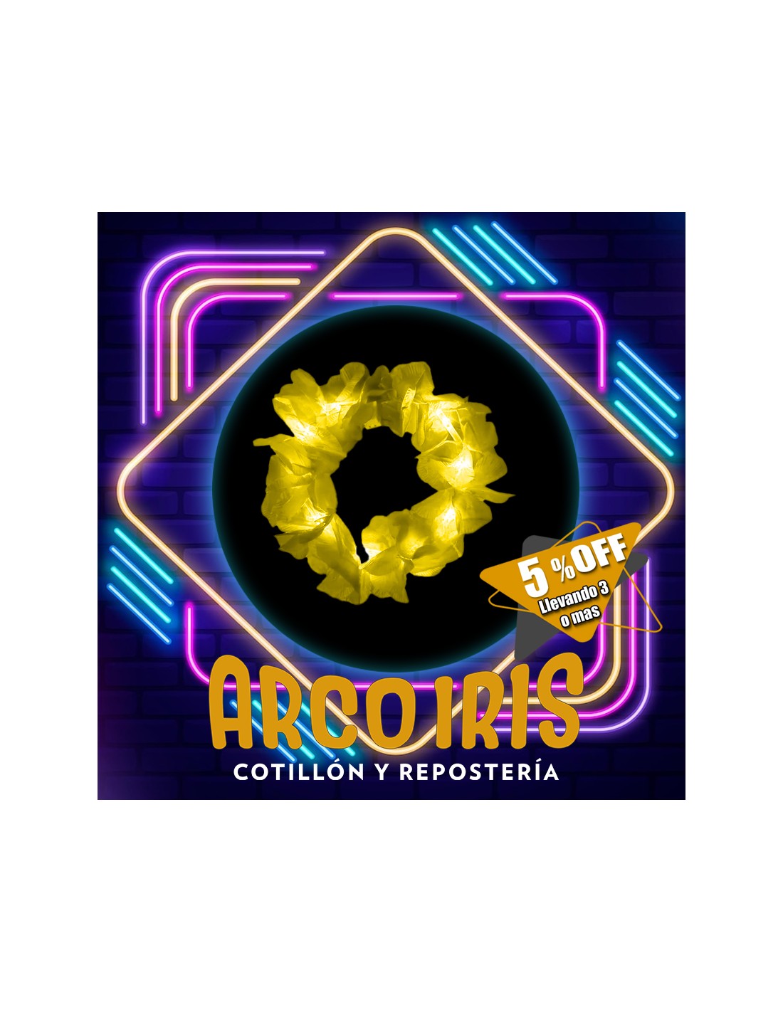 LUMINOSO VINCHA HAWAIANA PREMIUM AMARILLO FLUO XU +3-5% PROMO POR CANTIDAD PRIMAVERA VINCHA CLAVEL SEDA
