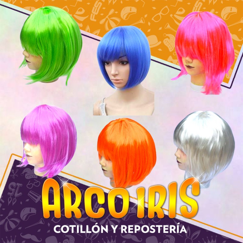 Peluca Lacia Corta Xu - En Bolsa Varios Colores Negra-naranja-roja-fucsia-azul-blanca-rubia-violeta-bolsa