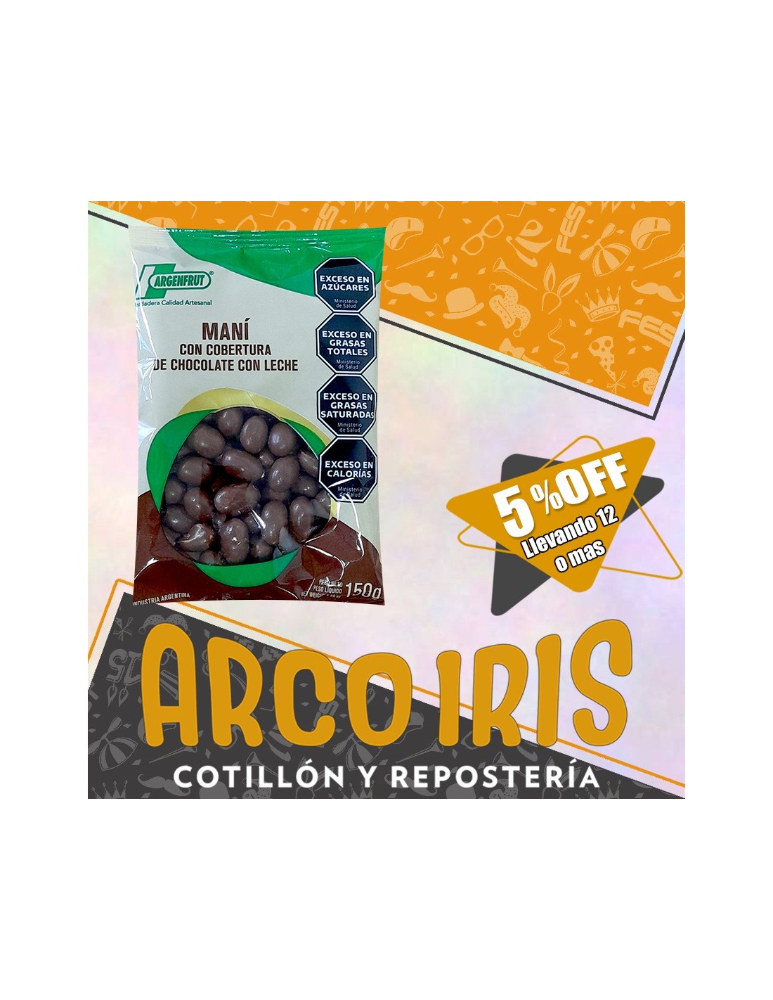 MANI CON CHOCOLATE X 120G +12-5% (CAJA) CON COBERTURA DE CHOCOLATE CON LECHE - ARGENFRUT
