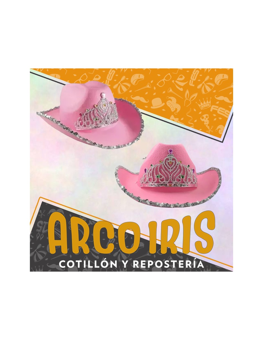 Gorro Cowboy Con Coronita Y Lentejuela Borde - Contorno Boa Varios Colores Lila-negro-rosa