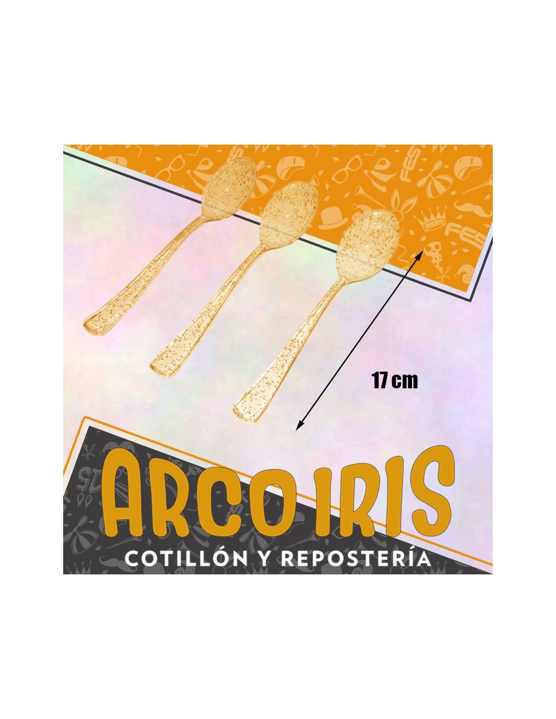 CUBIERTOS CUCHARA PLASTICO GLITER DORADO X 12 - 17 CM CUTLERY