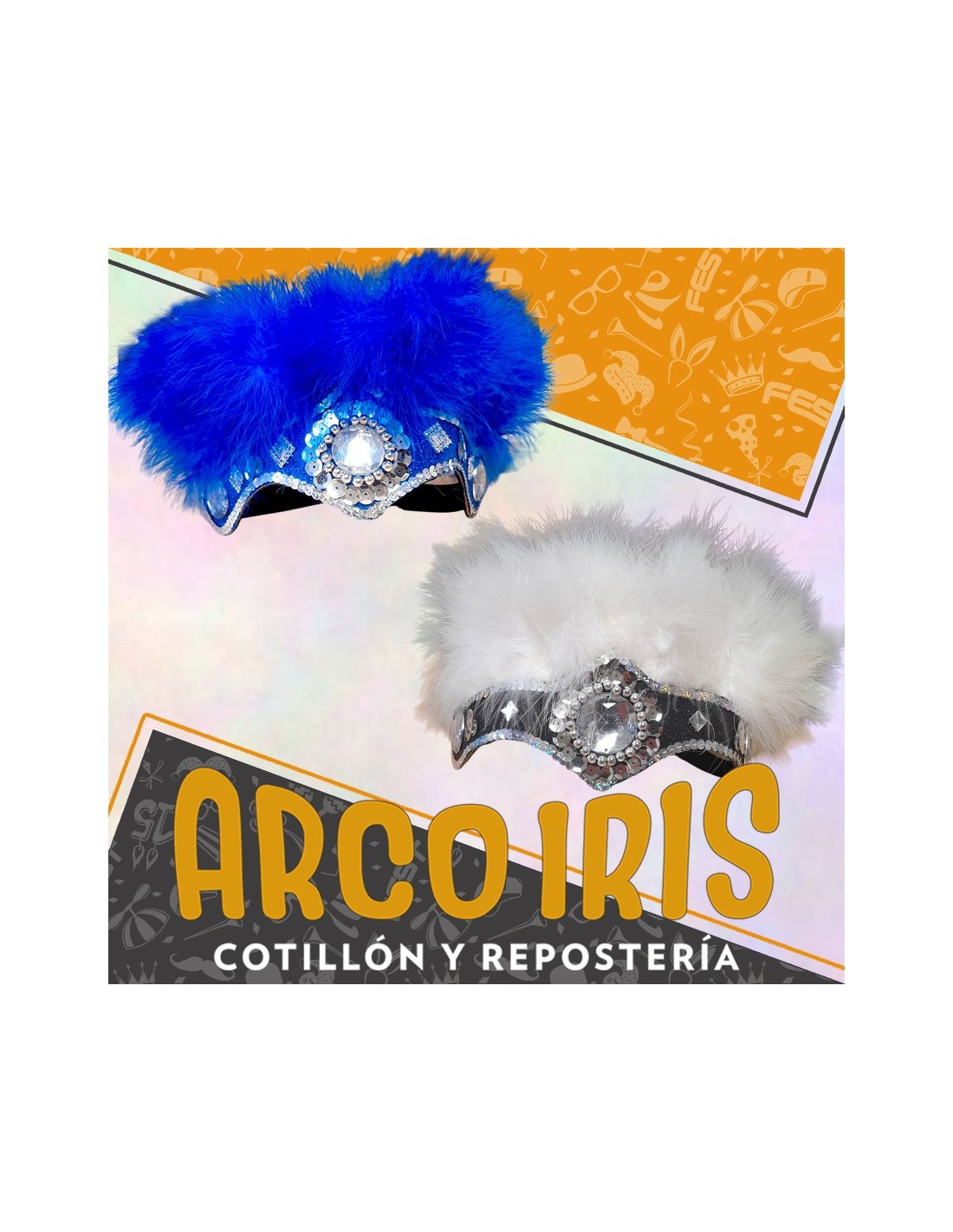 CARNAVAL VINCHA CORONA GEMA - LENTEJUELAS Y PLUMAS MINI MARABU