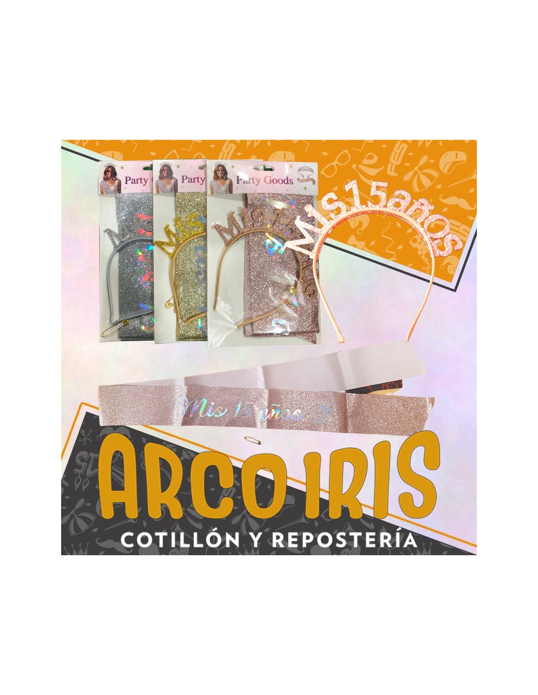 VINCHA 15 A\`d1OS GIBREADA Y BANDA GIBREADA - PARTY GOODS DORADA-PLATEADA-ROSA GOLD-ROSA-VINCHA -