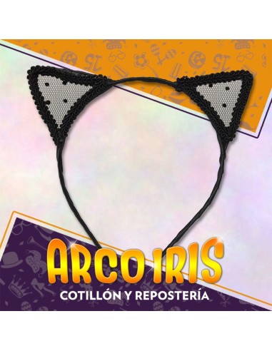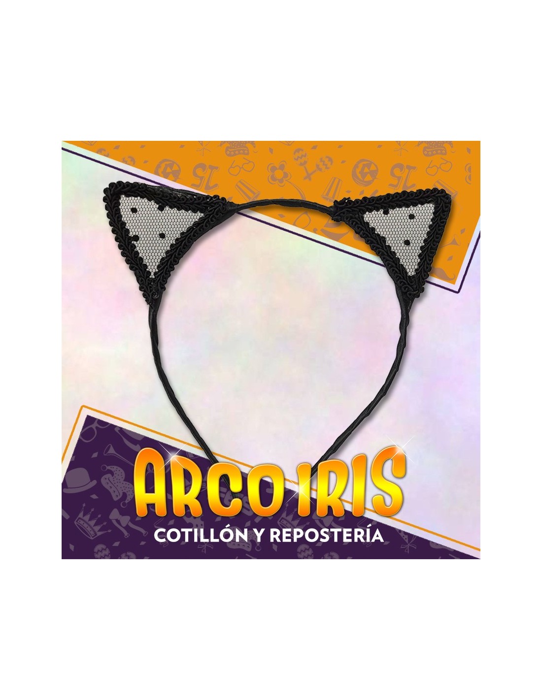 Vincha Alambre Gatita Con Tul Y Pasamaneria Xu - Negra