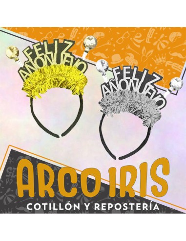 VINCHA FELIZ A`d1O NUEVO XU -DORADA-PLATEADA-LAMETA -LETRAS GIBREADA-